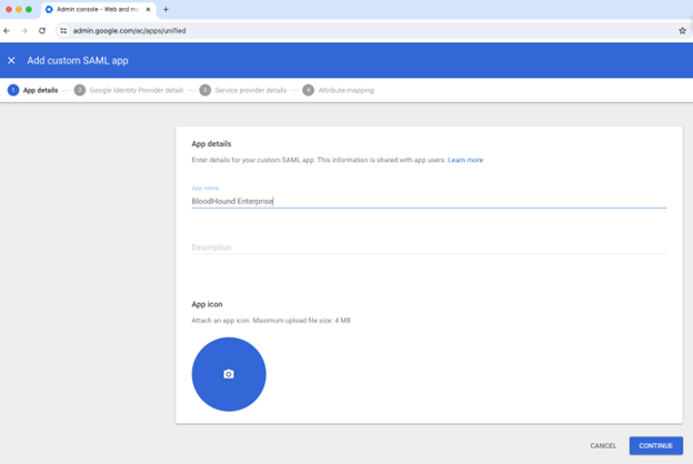 1. Give the app an appropriate name, such as BloodHound Enterprise. Optionally, add an icon and description.